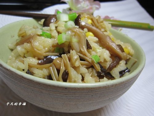 首先將米洗乾淨Lily用2杯生米外加一杯菇茸醬和半杯的玉米粒
