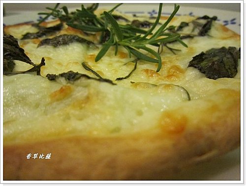 陽台的薄菏和迷迭香都長的很茂盛除了剪下來曬成香草乾保存外將新鮮的香草烤成比薩